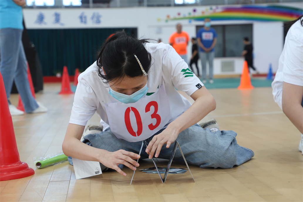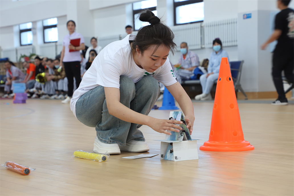“加油!加油!”在紧张激烈、有趣活跃的比赛氛围中,护患选手们,着装整齐,大胆挑战自我,齐心向前,拼速度、秀技能,相互加油、相互鼓励,积极参与到拓展活动中,趣味拼图、托球快跑、扑克节节高、沙包投壶、袋鼠跳跳等多种关卡轮番进行。比赛现场气氛热烈,精彩纷呈,不时传来阵阵掌声、喝彩声。