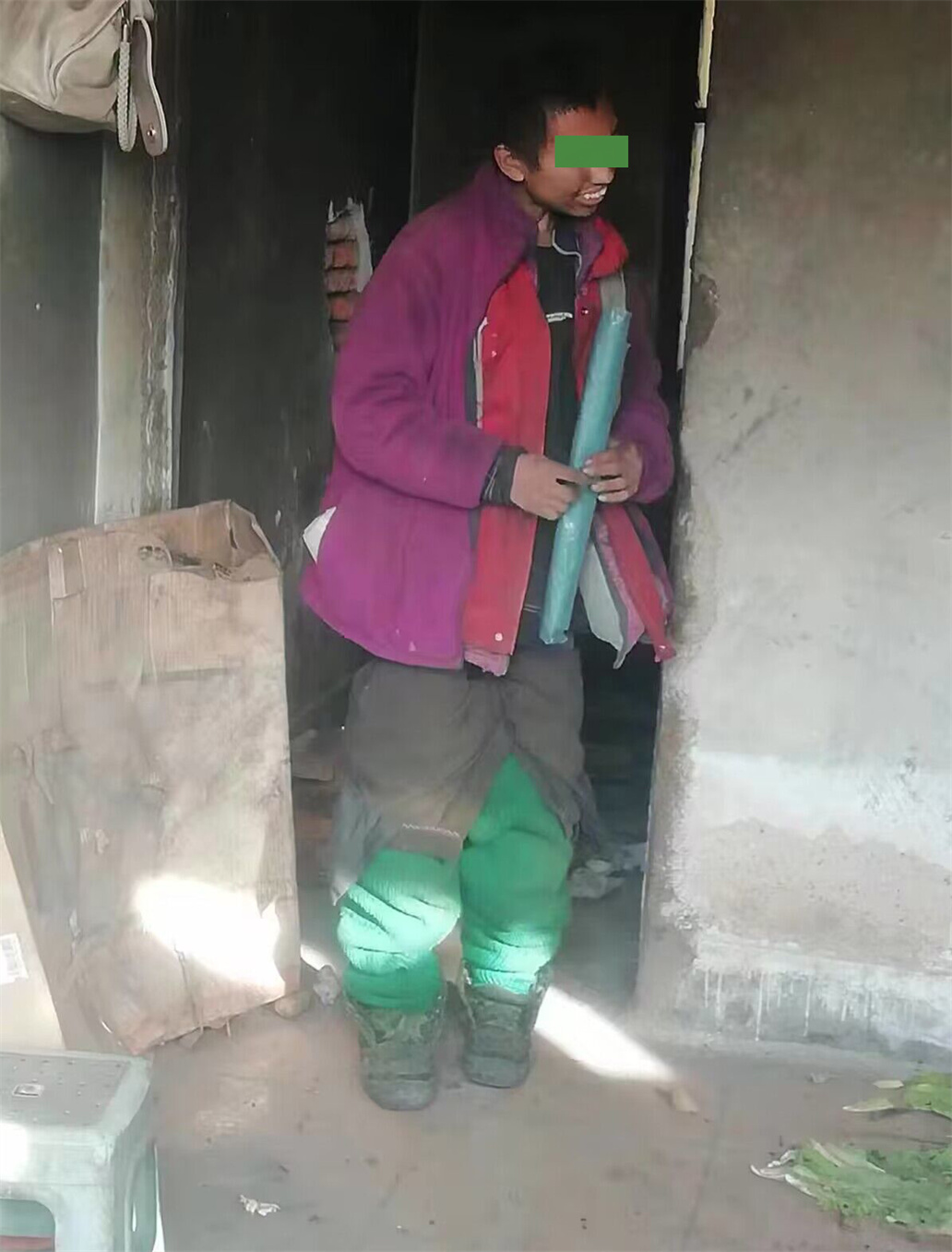 2002年,刘天(化名)出生,自幼儿起生长发育落后于常人,行为怪异,无法与父母共同生活,极易肇事肇祸,父母无奈只能把他锁在偏房的煤棚子中,因为生活自理能力差,他生活的像个野人,到了寒冷的冬日,手脚更是生满了冻疮。