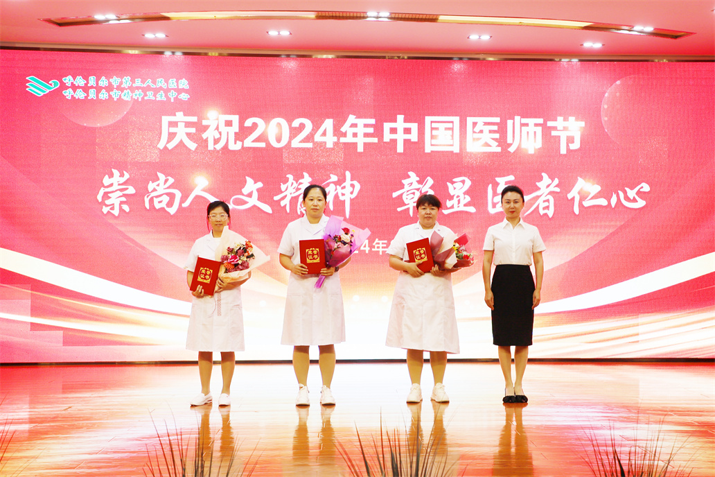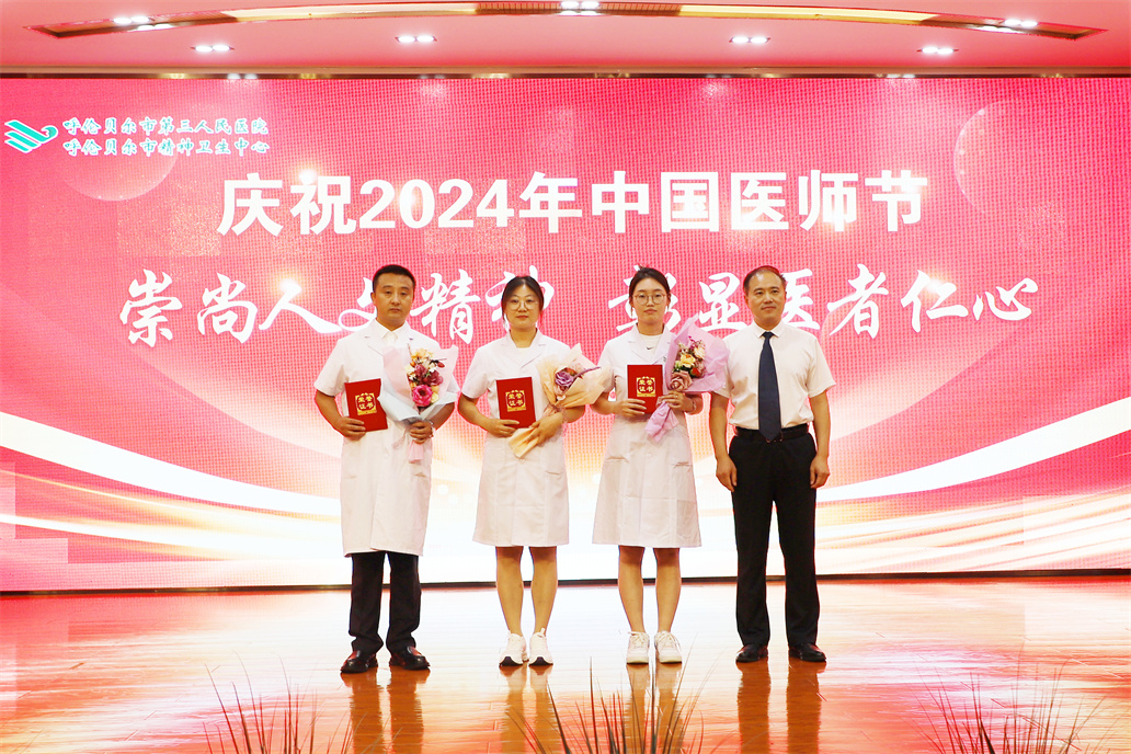 为深入贯彻落实党的二十大和二十届三中全会精神,大力弘扬伟大抗疫精神和崇高职业精神,团结凝聚广大医务工作者与党同心、与党同行。8月19日,呼伦贝尔市第三人民医院(呼伦贝尔市精神卫生中心)举办了主题为"崇尚人文精神,彰显医者仁心"庆祝2024年中国医师节表彰暨医患联欢会。